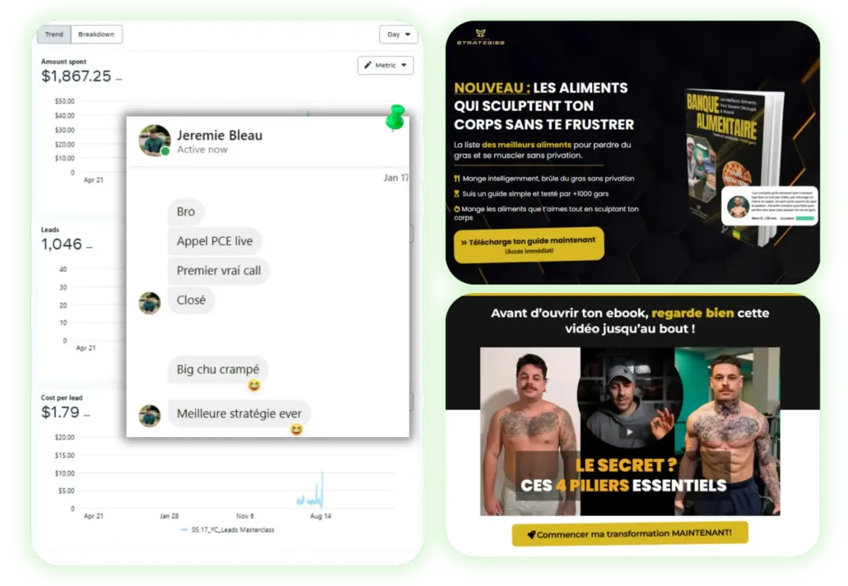 J’ai essayé plein de trucs. D’autres agences, des programmes à 25 000 $, des mois de tests… pour zéro résultat. Je faisais même mes pubs moi-même. Depuis que je travaille avec Yacine, ma business a complètement changé. On a plus que triplé le chiffre d’affaires en 3 mois, même en période creuse. Ce que j’aime, c’est qu’il ne vend pas du rêve.