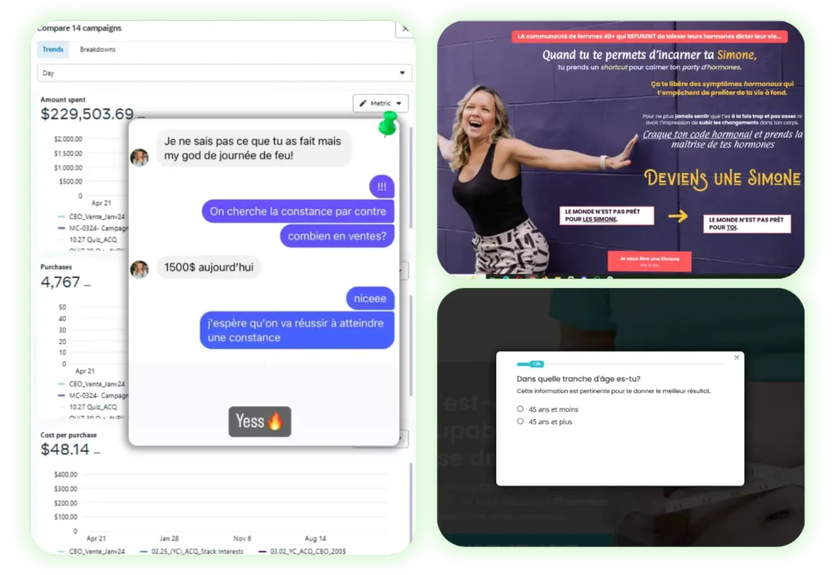 Mireille vendait surtout en 1:1, sans système d’acquisition ni de conversion. Tout reposait sur le bouche-à-oreille "zéro scalabilité". On a lancé un SLO à 47$, intégré un quiz stratégique et mis en place des upsells automatisés vers son offre à 2 800$. Résultat : une machine de vente qui génère +100K$/mois, avec un tunnel 100 % auto et des leads ultra qualifiés.